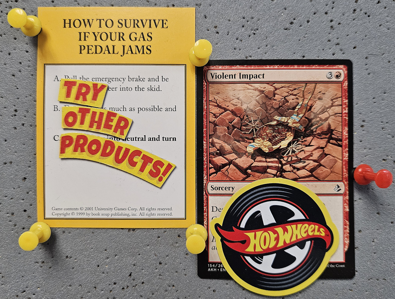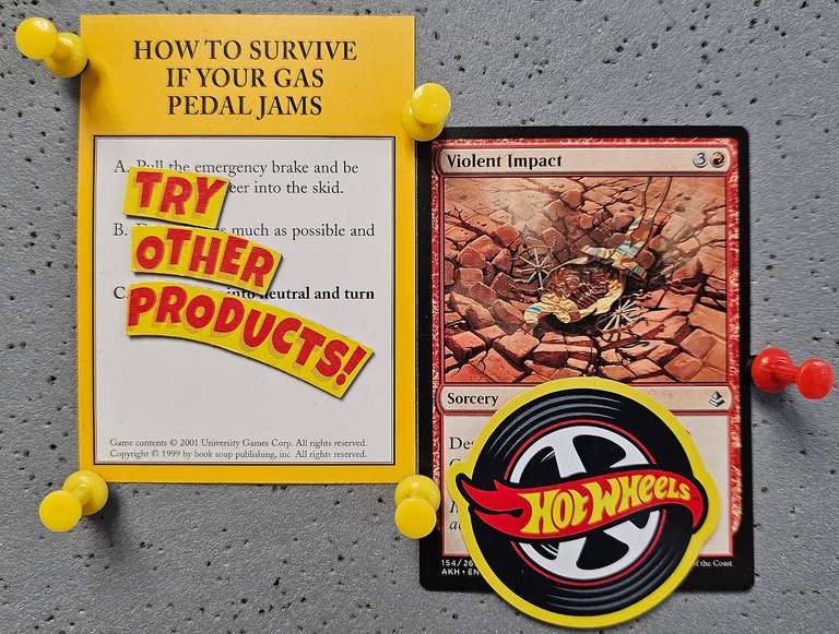 - "How To Survive If Your Gas Pedal Jams" from The WORST-CASE SCENARIO Survival Game (2001), card game published by University Games.