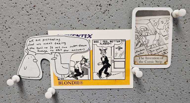- "The Invention of the Comic Strip" (Xavier Collette & Nicolas Fructus, 2011), from Timeline: Inventions, card game by Frédéric Henry, published by Asmodee.