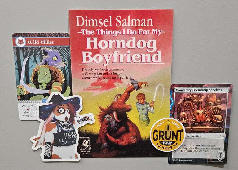 - "Mandatory Friendship Shackles" (Franz Vohwinkel, 2017), from Magic: The Gathering - Unstable, published by Wizards of the Coast.