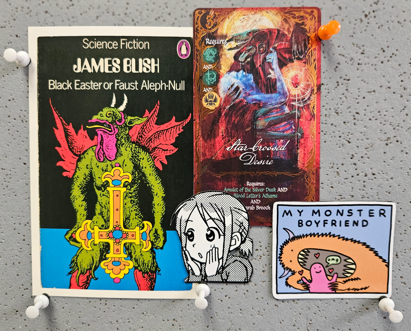 Postcard credit: Black Easter or Faust Aleph-Null (James Blish, 1968; cover by Peter Lord, 1968).