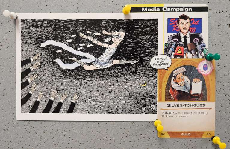- "Media Campaign" from Illuminati, Deluxe Edition (1999), card game by Steve Jackson, published by Steve Jackson Games.