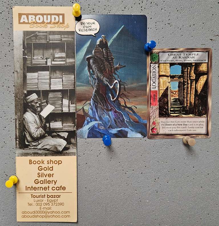 - "Great Temple At Karnak" (Jason Voss, 1996), from Mythos, card game by Charlie Krank, published by Chaosium.