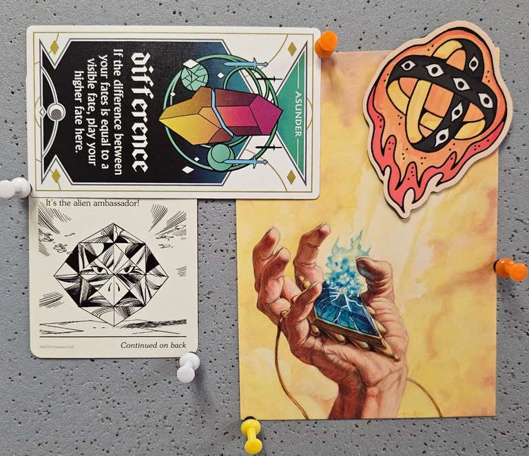- "Asunder" (Matthew Bishop, 2019), from The Shipwreck Arcana - Stars Below, card game by Kevin Bishop, published by Meromorph Games.