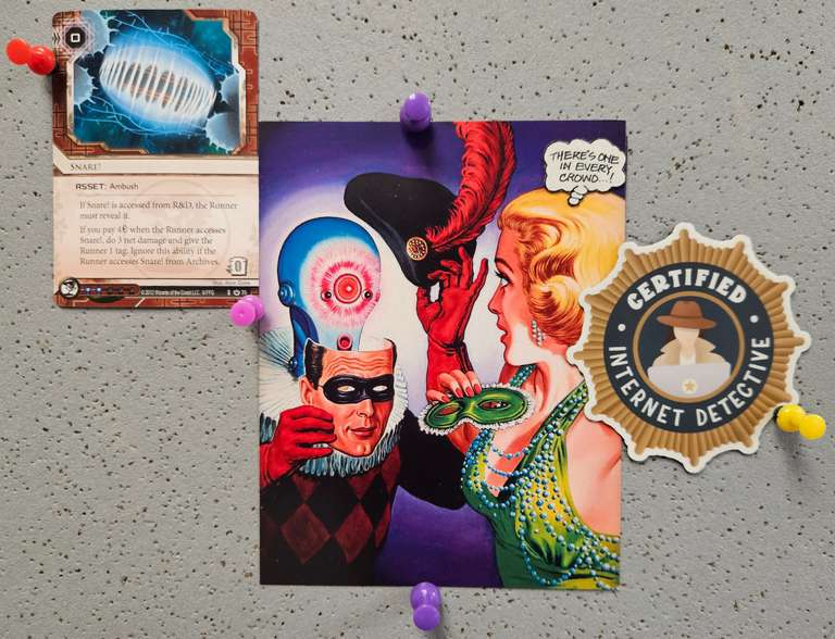 Card: "Snare!" (Imaginary Friends Studios, 2012), from Android: Netrunner, designed by Richard Garfield & Lukas Litzsinger, published by Fantasy Flight Games.