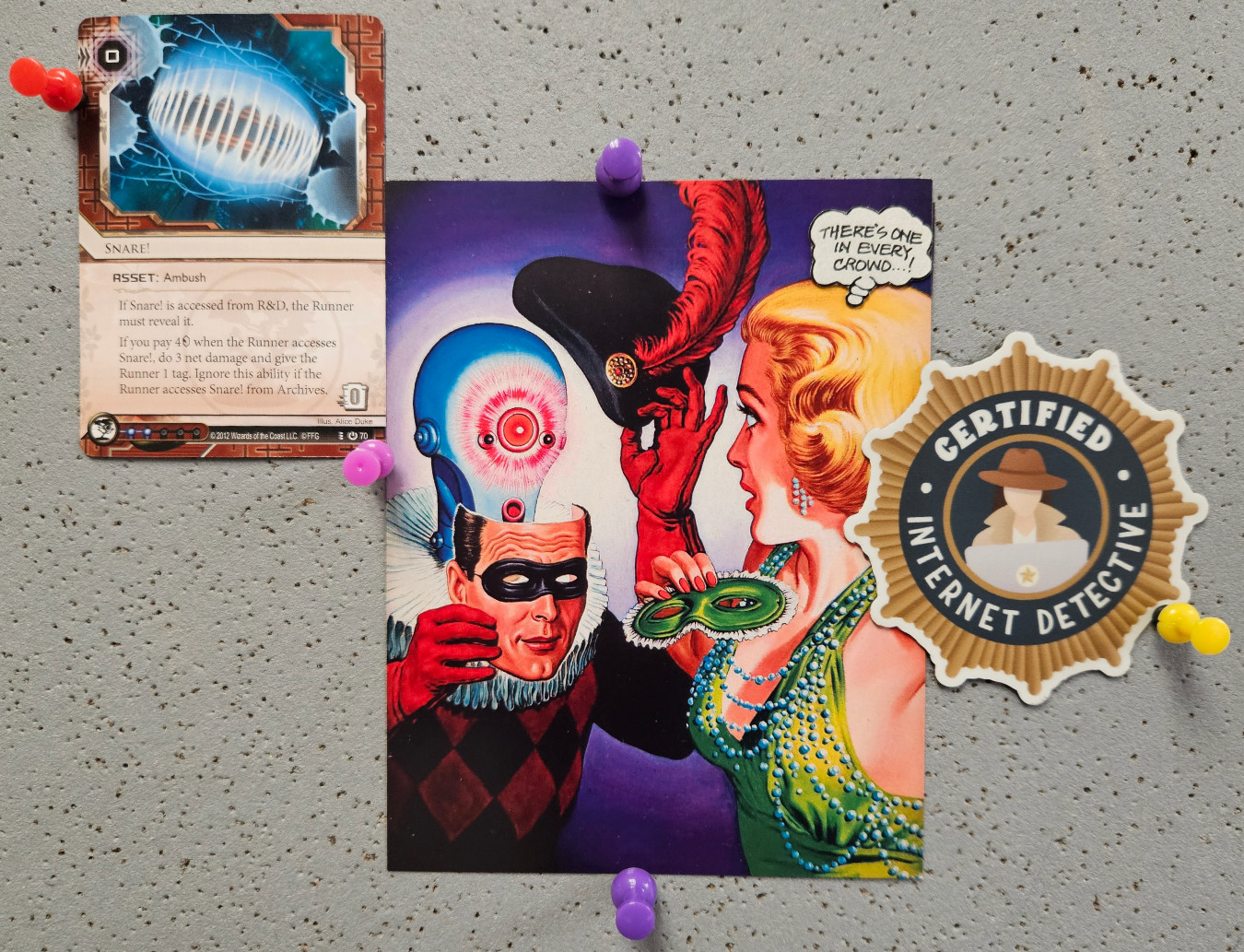 Card: "Snare!" (Imaginary Friends Studios, 2012), from Android: Netrunner, designed by Richard Garfield & Lukas Litzsinger, published by Fantasy Flight Games.