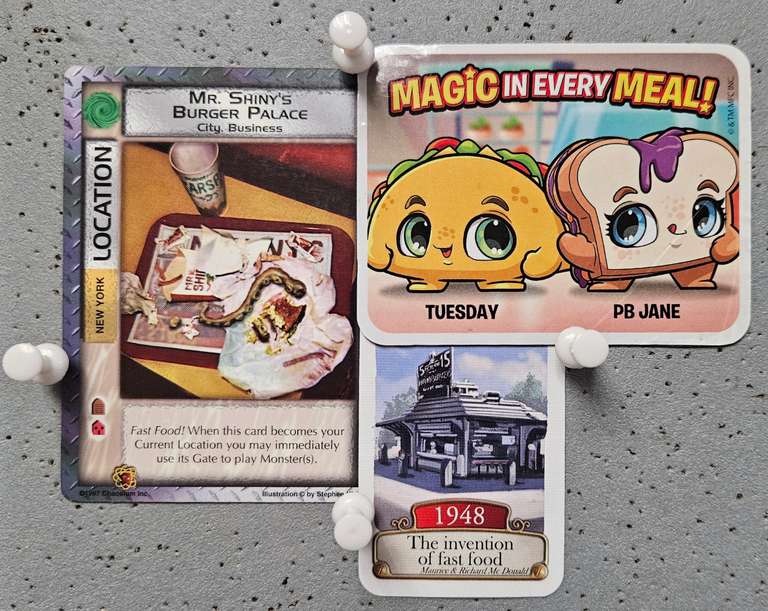 - "The Invention of Fast Food" (Xavier Collette & Nicolas Fructus, 2012), from Timeline: General Interest, card game by Frédéric Henry, published by Asmodee.