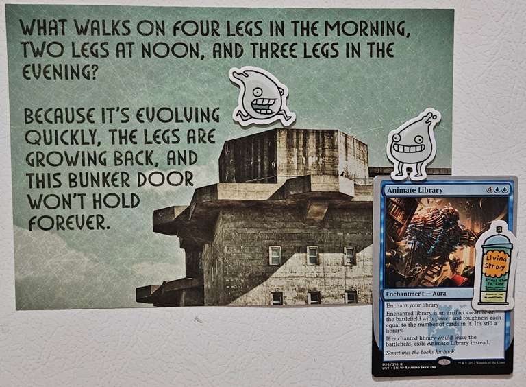 Cards: "Animate Library" (Raymond Swanland, 2017), from Magic: The Gathering - Unstable, published by Wizards of the Coast.