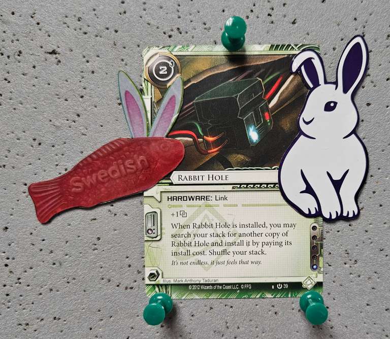 Card: "Rabbit Hole" (Mark Anthony Taduran, 2012), from Android: Netrunner, designed by Richard Garfield & Lukas Litzsinger, published by Fantasy Flight Games.