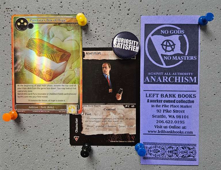 - "Anarchist" (David Monette, 2005), from Call of Cthulhu CCG, card game by Eric M. Lang, published by Chaosium.