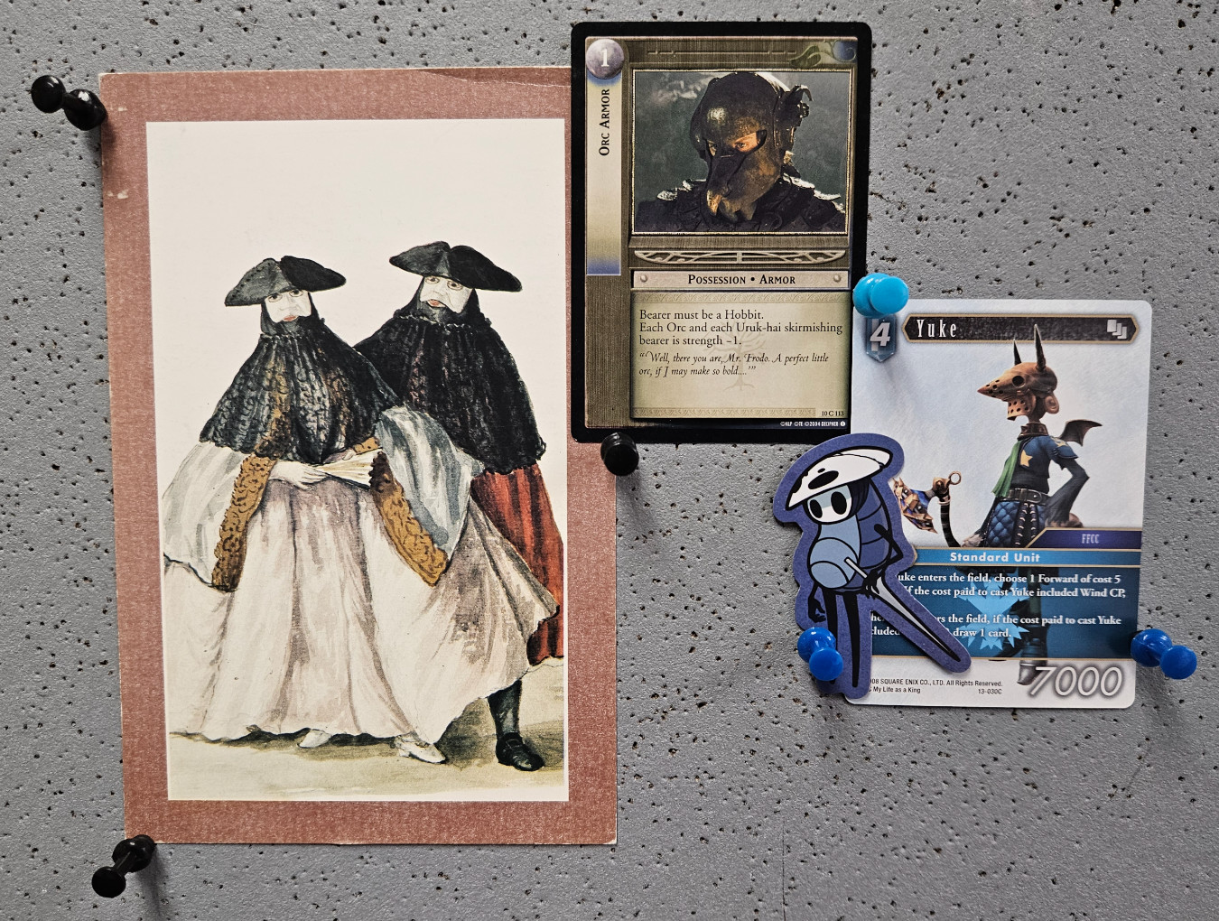 Exiting through the gift shop is *so* 2010, after all. "Sure, the plane's already in the air, but there's plenty of time to finish building the landing gear!" The better to smell our enemies with, my dear. "Don't stop, don't stop, go, go, go, go, go, go, go, go, go, go." -Dean Martin, "Go Go Go" (1951). New horse? Bring it here, let's see those teeth. Did it just... chuckle? It's pretty to look at, so surely it must be safe to ingest! (Geez, who put all these labels on this thing?) They say robojazz is all about the lines of code that you *don't* run. If he remains risen for more than three days, consult your exorcist. "Everybody's got an angle!" The heretics are looking forward to the feast. Most tales once told now have tellers now long-dead. I cast a spell on me. 'Cause I'm mine. "I’m like the resident bad boy here, I can say whatever I want." Jacob Andrews, "The Most Majestic Creature" (Drawfee, June 23, 2014). The silver lining for a masquerade, which we can't count on elsewhere, is that everyone unmasks at the end. Strange things are ahoof down on the ranch! Time to get out into sunlight and start frolicking! The moral of the story is: You better be darned sure you can put down anything you decide you want to pick up. I like my dance partners like I like my house band: Acoustic. Sometimes you gotta do it yourself, even if someone else *ought* to be standing up for you. "It's not the world that's ending, just one or both of our stories." No password? No problem! There are no boring numbers, only boring number crunchers. What we gotta do, you see, is just one one of each of the freakiest little guys we can! That'll bring in the crowd! And they're like, "Yes, more boba, please!" Let 👏 rodents 👏 have 👏 Internet! 👏 Old religions, for a new age of obscurantism and paranoia! "I hope he can see this 'cause I'm doing it as hard as I can." -Ignignokt the Mooninite Are you sayin' to me the dogs weren't put in the kennel until last night?! Who can even remember if I hunted you or if your song overpowered me? "When your life is on the line, you want to make use of all your tools." - Miyamoto Musashi, *The Book of Five Rings* (1645), as translated by Thomas Cleary (1993). "His thoughts were red thoughts and his teeth were white." -H. H. Munro, "Srendi Vashtar" (1911). What is an idea? A miserable little pile of secrets! The boxes three with the wind-up key. "The secret to looking this good at our age? Layers. Lots of layers." Let the bodies hit the dance floor. Watch out, they got a glow about 'em. The blues? No, this is deeper, darker. It's very calm actually, very relaxing. Young love sure is something to behold! "Just because we like to keep it casual on a Friday doesn't mean we don't put in the effort, you know?" Wholesome times in the den of vipers. I hear they make them all themselves. "Ohohoho, looks like someone brought a mouse to a cat fight." "That's awful, honey, but it also seems like it might be a skill issue." Mother knows meanest. "Your weapon only makes us more powerful." See you tomorrow! "You know how you said you were worried about living alone? Well, good news!" These beaks were made for honkin'. "Nail-tough and untiring, try me and see." And I'm like, I'm better on wheels. Damn right, I'm better on wheels. I could show you what that speed reveals. "Hey Tim, anyone ever tell you that you kinda have a type?" It's important to give your sharks the breathing room to really be themselves. It's fine if the park the money here, it's fine! It's not like he's going to spend it. "When investigation is outlawed, only outlaws will investigate!" That means you can make yourself into an even dumber masterpiece! A play in three acts! My thousands of fans who all believe me can't be wrong! "We get some kind of weather here nearly every day." -Ashleigh Brilliant Feel free to fly in your lucid dreams, if you like. I'll do mine while lucid waking, thank you. All good puppies! No problems here! Turns out, you can only live on a rock for so long. Be especially wary of the library's third leg. Terrible is the beast who feeds chiefly from meager larders. Birdgirls are the word, girls! That's what makes them so dangerous. Imagine what it will be worth in five years! Are you looking at them? Look at these beans. CONDITION: RED | EMERGENCY | CODE: 102 "We're being issues arms made by the lowest bidder. What were you expecting?" Be sure to get your pets spade. I hear they're the same all the way through. Huge owls are desired by many. This causes a variety of problems. This green won't Ever all by itself. Gimme fifty. Lemme tell you, steppers don't come much higher than these! Maybe the real treasures are the foes we bound along the way. "The vintage Furby is good condition and has been tested and is working properly. The Furby's eyelashes have come loose and are being kept with the Furby but are not attached." "I think you'll find that our enemies... get the point!" You're not going to manage a triple double unless you rack up some assists. "Every nine years nine men enter the house so that I may deliver them from evil. I hear their steps or their voices in the depths of the stone galleries and I run joyfully to find them. The ceremony lasts a few minutes." -Jorge Luis Borges, "The House of Asterion" (1964). "Cyberpsychosis isn't a personality, Xris." "We're not so different, you and I..." You fools! Did you think you could glimpse the mysteries with *uncorrected vision?!* This soft water is delicious, but be a doll and bring me a bottle of some of your hard water next. "OK, so we can fit this on the shelf if we move this here and that there and this over here..." "I've been sleeping a thousand years, it seems." -Evanescence, "Bring Me To Life" (2003) You'll have to train 'til you're a hundred to land a hit against these sinuous beasts! "You can rely on nobody, and nobody will always be loyal. Therefore, nobody should be your constant companion." -Zote The Mighty This, surely, is the fu
